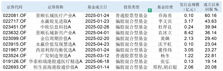表:今年以来回报率排名前10位的新发基金明细(仅列举主动权益基金) 来源:Wind 界面新闻整理