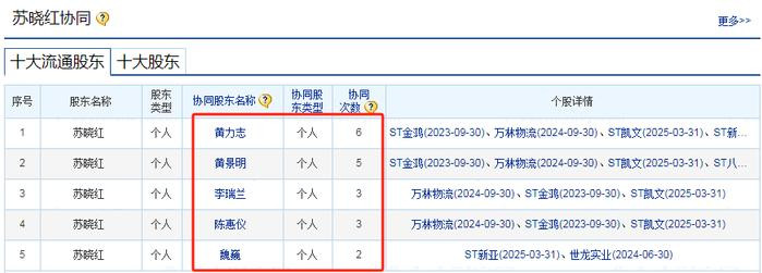 同时,进一步查阅新进的5名股东,其持股偏好高度类似,多次同进同出,疑似“协同股东”,并且这几位疑似协同股东过往的操作标的主要以ST股为主。